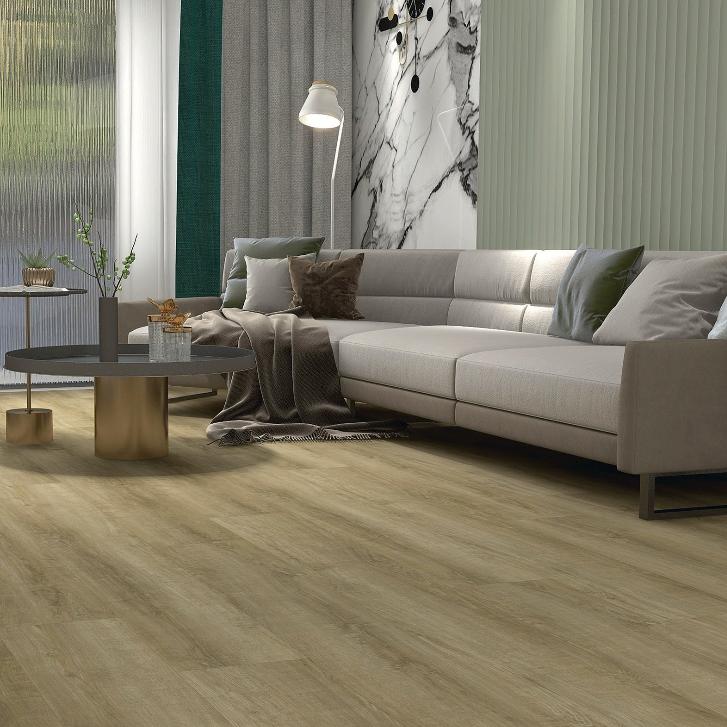 La bellezza della natura incontra l’efficienza della modernità. Miso è l’articolo ideale per gli amanti del green decor, rigogliose foglie verdi si sposeranno perfettamente con il colore naturale del pavimento.